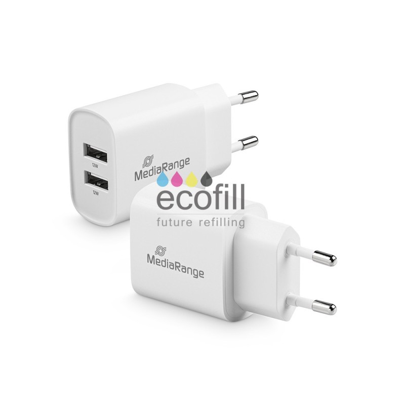 Adapter MediaRange 12W charger with two USB-A outputs, white