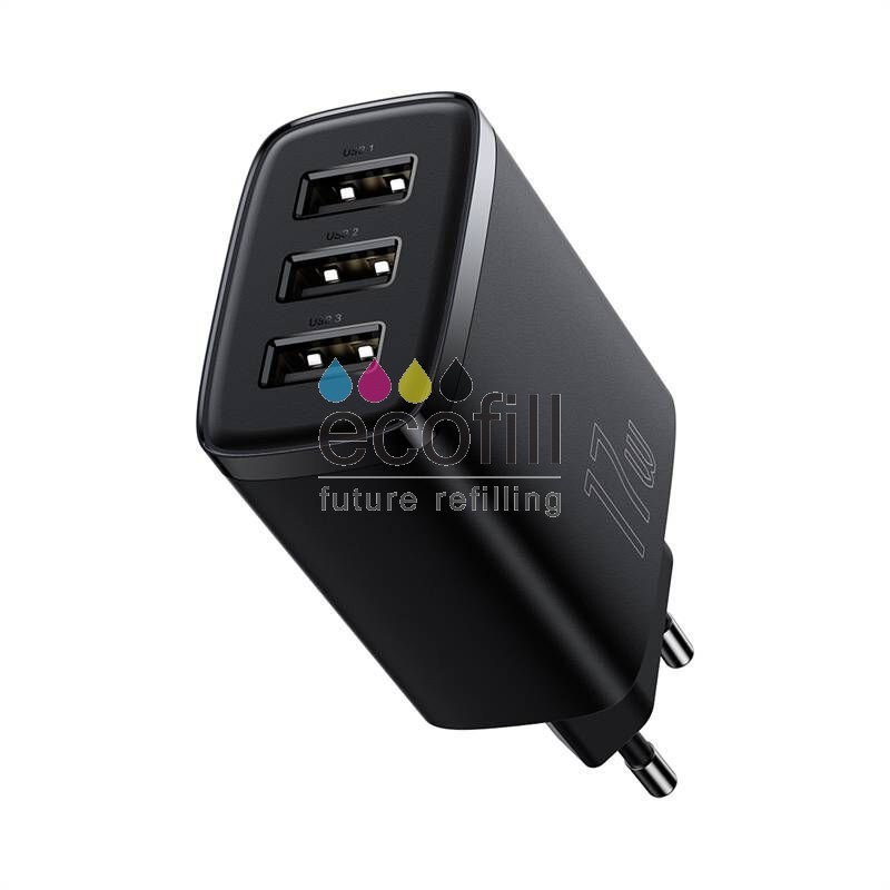 Adapter BASEUS Baseus Χωρίς Καλώδιο με 3 Θύρες USB-A 17W Μαύρος