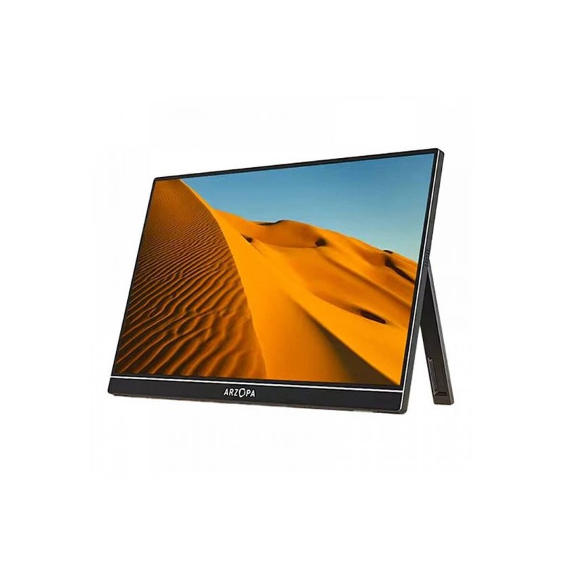 Η Arzopa A1T είναι μια φορητή οθόνη 15,6" με Full HD ανάλυση (1920×1080) και IPS panel, που προσφέρει ζωντανά χρώματα και ευρεία γωνία θέασης 178°. Η τεχνολογία φροντίδας ματιών μειώνει το τρεμόπαιγμα και το μπλε φως, εξασφαλίζοντας άνετη χρήση όλη μέρα. Διαθέτει θύρες USB-C και mini HDMI, καθώς και υποδοχή 3,5 mm για ακουστικά ή εξωτερικά ηχεία, προσφέροντας ευρεία συμβατότητα με laptops, tablets, smartphones και κονσόλες παιχνιδιών. Η A1T υποστηρίζει τρεις λειτουργίες προβολής – διπλής χρήσης, επέκτασης και δεύτερης οθόνης – και μπορεί να τοποθετηθεί οριζόντια ή κατακόρυφα. Ο ελαφρύς και στιβαρός σχεδιασμός από κράμα αλουμινίου την καθιστά ιδανική για εργασία, ψυχαγωγία και ταξίδια.